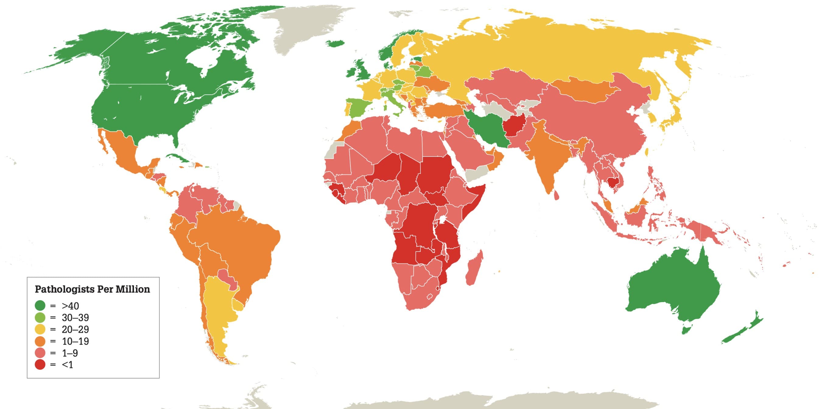 Pathologists are important members of the laboratory team, playing key roles in diagnosis of diseases, diagnostic leadership and quality control. The severe shortage of pathologists in Africa impedes diagnosis of diseases like autoimmune conditions, extrapulmonary tuberculosis and cancers, leading to increased morbidity and mortality. Many developed countries have a ratio of 1 pathologist to every 50,000 people or less. In Africa, this ratio is 1 pathologist to 1 million people. This shortage illustrates the even larger problem affecting availability of laboratory professionals in general as well as the distribution suitable physical laboratory infrastructure across the continent. This problem contributes to cancer being the 5th leading cause of death in Africa and 3rd leading cause of death in Kenya, the birthplace of The Pathology Network.